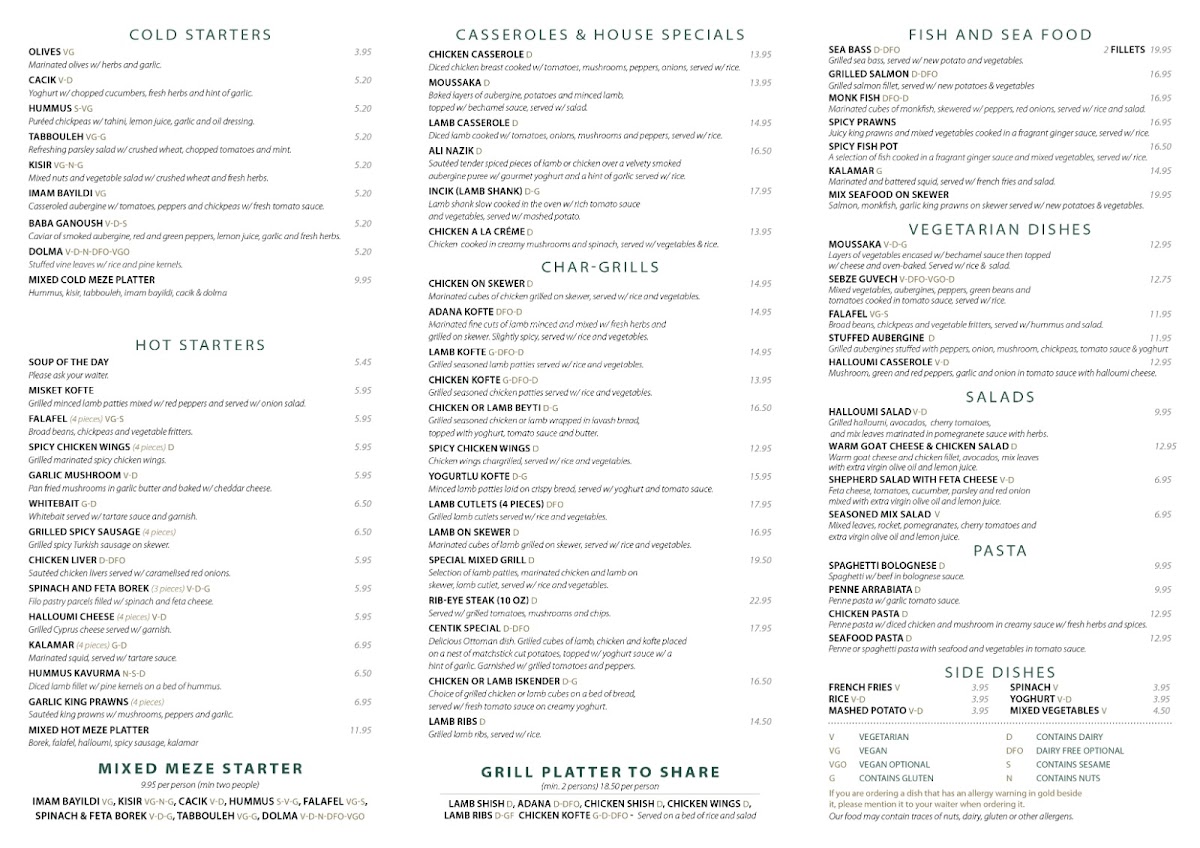 The main course offerings are a feast for the senses, boasting delights including Chicken Kofte, Sea Bass, and a delectable Vegetarian Casserole. Each dish is crafted using fresh, high-quality ingredients, ensuring remarkable taste and presentation.