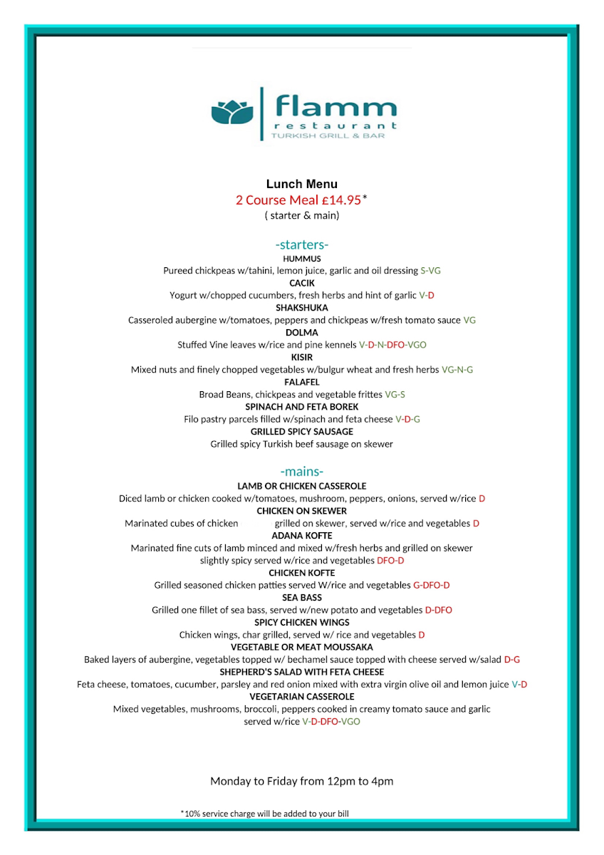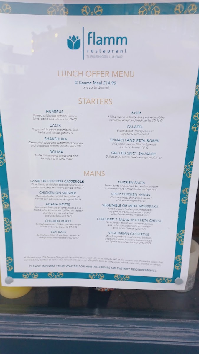 Welcome to Flamm Restaurant, where culinary passion meets authenticity in Turkish cuisine, located at 13-15 High St, Staines TW18 4QY. This charming eatery captivates diners with its rich menu, featuring delicious cold starters like Mixed Cold Meze Platter and Imam Bayildi, followed by enticing options such as Shakshuka and Falafel.